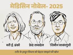 साल 2025 का मेडिसिन नोबेल प्राइज मैरी ई. ब्रंकॉ, फ्रेड राम्सडेल और शिमोन साकागुची को मिला है। इन्हें यह प्राइज पेरीफेरल इम्यून टॉलरेंस के क्षेत्र में किए गए रिसर्च के लिए दिया गया है।