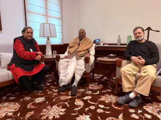 कांग्रेस में पार्टी हाईकमान से मतभेद की खबरों के बाद कांग्रेस सांसद शशि थरूर ने गुरुवार को कांग्रेस अध्यक्ष मल्लिकार्जुन खड़गे और राहुल गांधी से मुलाकात की। तीनों के बीच बैठक संसद में खड़गे के कार्यालय में हुई।