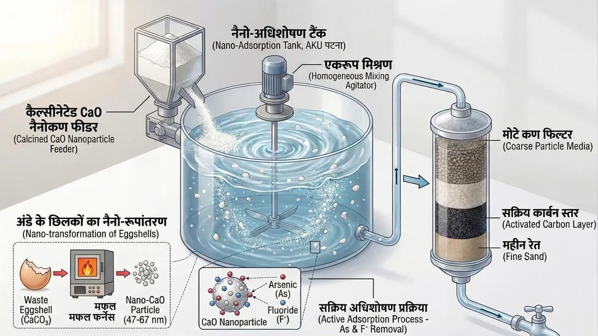 पटना , 27 मार्च 2026 । पटना के वैज्ञानिकों ने जल शुद्धिकरण के क्षेत्र में एक अनोखा और किफायती समाधान विकसित किया है। उन्होंने अंडे के छिलकों का उपयोग करके एक ऐसा वाटर फिल्टर तैयार किया है, जो पानी में मौजूद हानिकारक और जहरीले तत्वों को प्रभावी तरीके से हटाने में सक्षम है। इस देसी तकनीक को खासतौर पर ग्रामीण और आर्थिक रूप से कमजोर वर्ग के लिए बेहद उपयोगी माना जा रहा है।