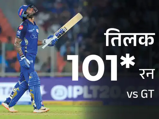 नई दिल्ली, मुंबई इंडियंस के युवा स्टार तिलक वर्मा ने एक बार फिर अपनी विस्फोटक बल्लेबाजी से सभी को चौंका दिया। पारी की शुरुआत में धीमी गति से खेलते हुए उन्होंने 22 गेंदों में केवल 19 रन बनाए, लेकिन इसके बाद अचानक गियर बदलते हुए अगली 23 गेंदों में 82 रन ठोक डाले। अहमदाबाद में तिलक वर्मा ने शतकीय पारी खेली। उनकी इस पारी में टेस्ट और टी-20 दोनों फॉर्मेट के रंग दिखे। शुरुआती 22 गेंद में 19 रन बनाने वाले तिलक ने अपनी आखिरी 23 गेंद में 82 रन ठोक दिए। जसप्रीत बुमराह ने पहली ही गेंद पर विकेट लिया।